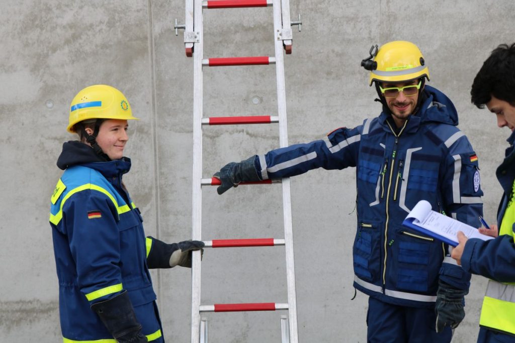 Um 7:30 Uhr machten sich die Jugendlichen mit zwei Betreuern auf den Weg Richtung Augsburg. Dort angekommen ging es nach einer kurzen Begrüßung an die Theorieprüfung. Diese beinhaltete Fragen zum THW und der THW-Jugend sowie zu Allgemeinwissen. Im Anschluss folgte der praktische Teil der Abnahme. Die Junghelfer:innen meisterten Aufgaben zu Leitern, Stichen und Bunden, Metallbearbeitung und Verkehrsabsicherung. Auch mussten sie ihre Teamfähigkeit in der Gruppenaufgabe unter Beweis stellen.