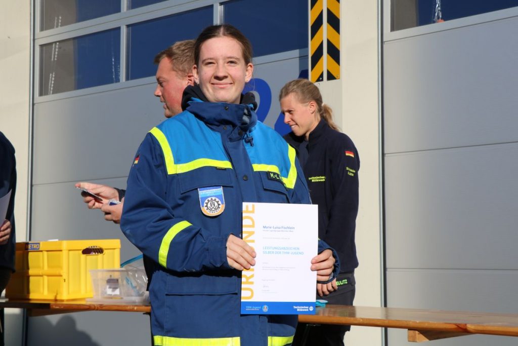 Auch in diesem Jahr verzeichnete die THW-Jugend München-West Erfolge bei der Abnahme des Leistungsabzeichens. Bei der Prüfung am 18.10.2025 im Ortsverband Augsburg konnten drei Junghelfer:innen die Stufe Silber mit Bravour ablegen. Hierbei mussten sie ihr theoretisches und praktisches Wissen in mehreren Aufgaben unter Beweis stellen.