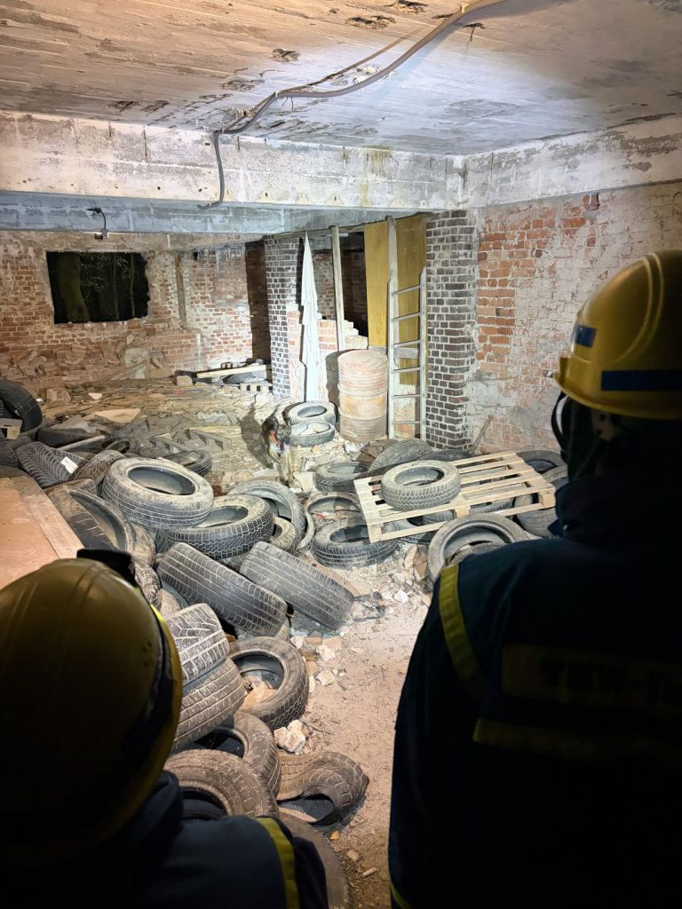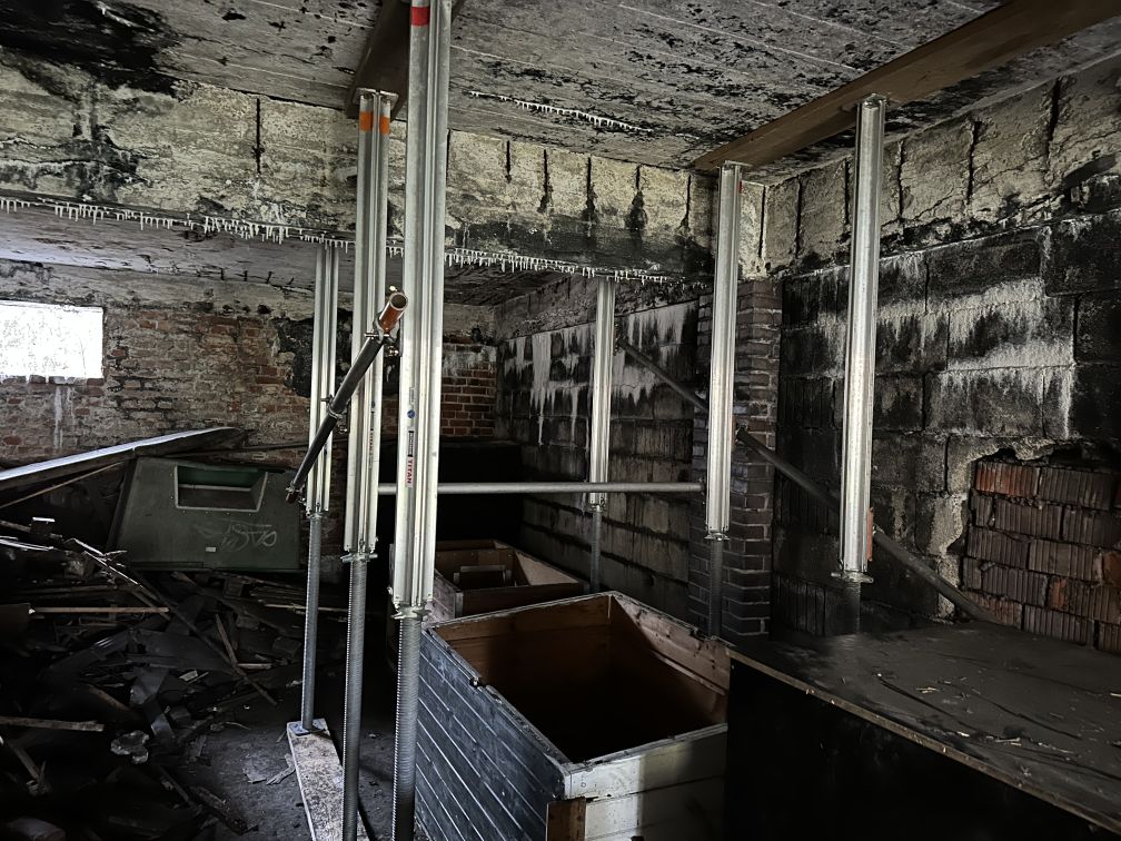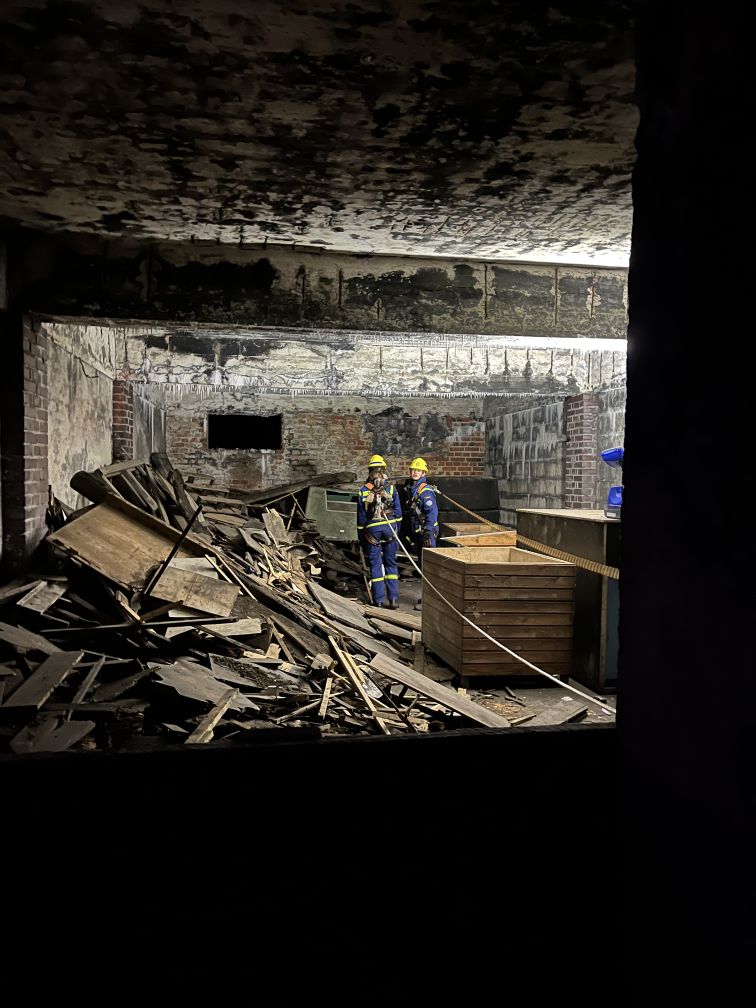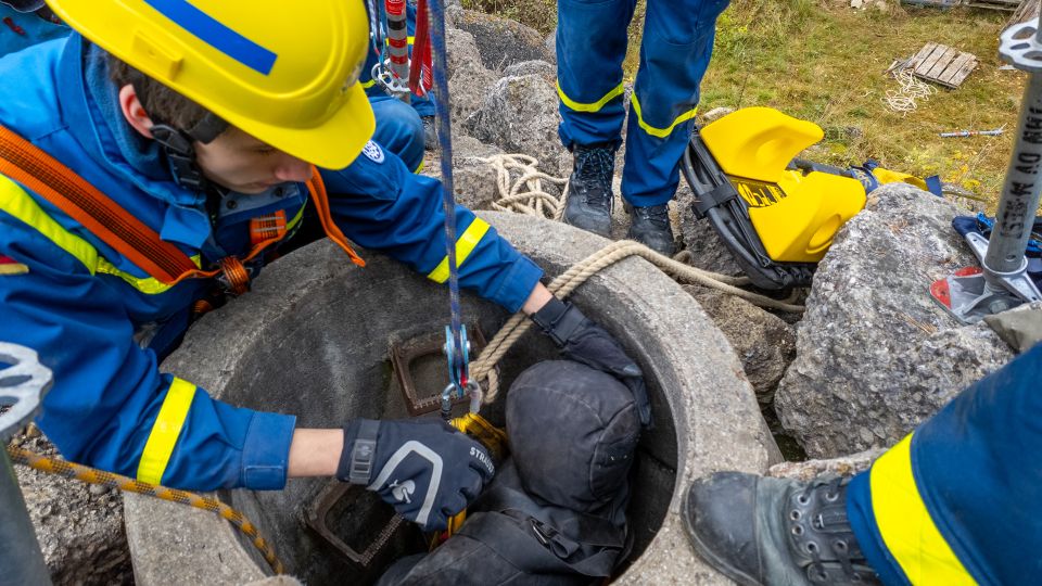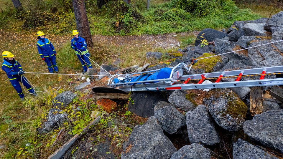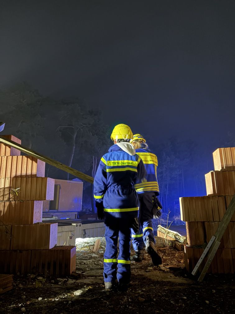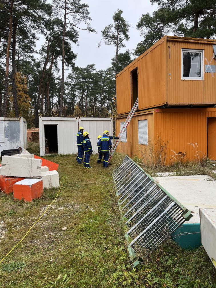 Nach einer kurzen Nacht wurden die Jugendlichen gegen 5 Uhr morgens durch vorher verteilte Übungspiepser geweckt. In zwei Gruppen mussten nun verschiedenen Einsatzszenarien abgearbeitet werden. Der eine Teil der Junghelfer:innen stützte die Decke eines „einsturzgefährdeten“ Gebäudes mittels Baustützen ab. Parallel mussten mehrere vermisste Personen aus einem teilweise eingestürzten Haus gerettet werden, wozu unter anderem ein Wanddurchbruch benötigt wurde. Im Anschluss konnten alle Jugendlichen beim Frühstück eine wohlverdiente Pause machen, bevor gegen 10 Uhr die nächste Übung begann. Die erste Gruppe musste nun vorher versteckte Übungspuppen aus einem unterirdischen System an Kriechgängen mittels Rollgliss, einem Rettungs- und Abseilgerät für Personen, befreien. Zeitgleich wurde eine weitere Person aus einem höhergelegenen Baucontainer mit einer Seilbahn auf den Boden zurückgebracht.
