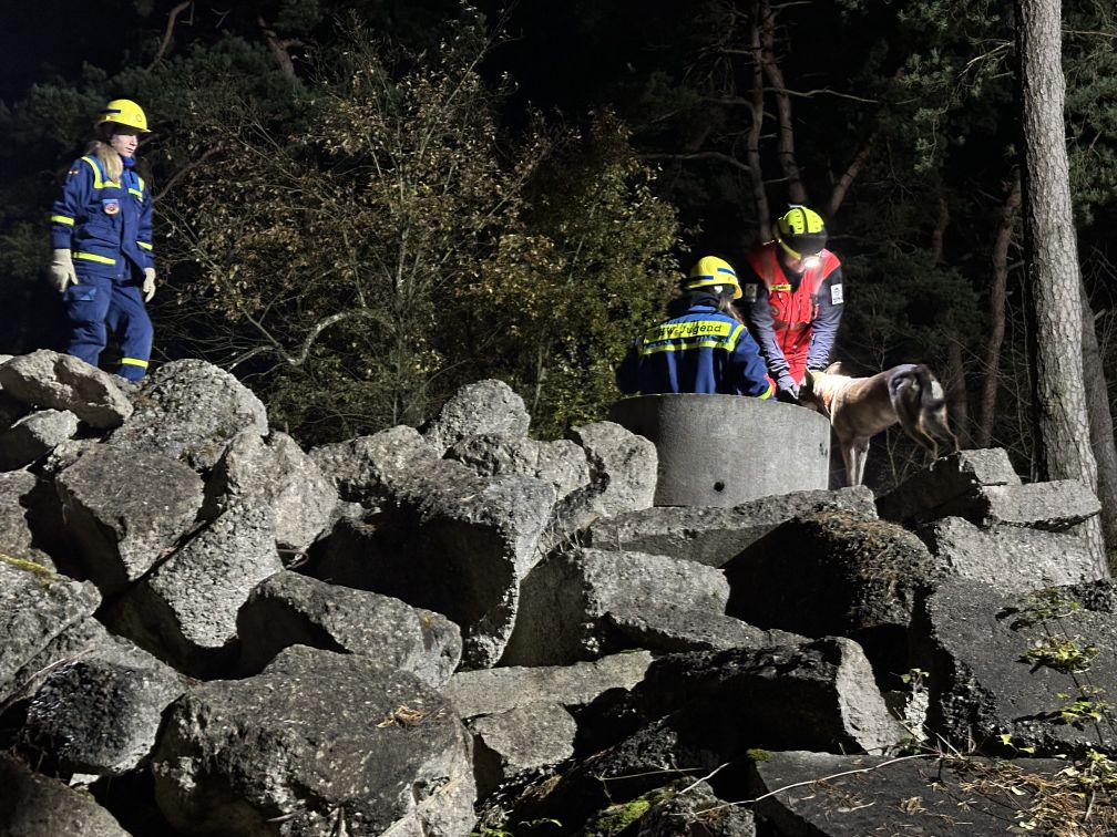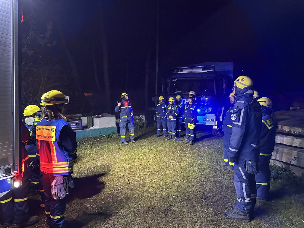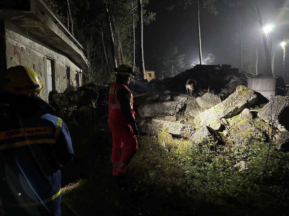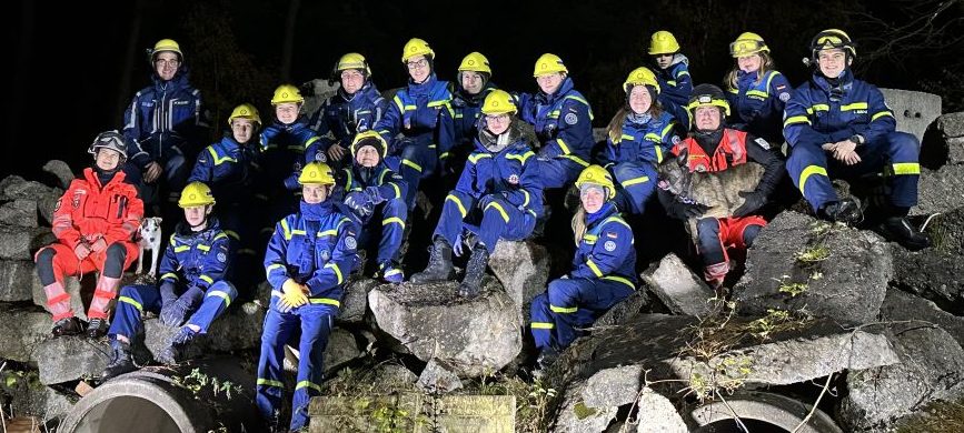 Nachdem am Donnerstagabend bereits alle Teilnehmer:innen fleißig beim Aufladen geholfen hatten, konnten sich die 13 Junghelfer:innen mit ihren Betreuern am Freitagnachmittag direkt in Richtung Garching-Hochbrück bei München aufmachen. Auf dem Übungsgelände der BRH Rettungshundestaffel Oberbayern e. V. angekommen, wurde zunächst das Zelt für die Übernachtung aufgebaut. Im Anschluss begann der erste Teil der Übung. Zusammen mit zwei Hundeführer:innen und ihren Hunden wurde das Orten von vermissten Personen in Trümmergeländen geübt. Nach einer kurzen theoretischen Einweisung in die Arbeit der Rettungshundestaffel konnten alle Jugendlichen eine Suche mitverfolgen und sich auch selbst verstecken. Vielen Dank auch an dieser Stelle noch einmal an die beiden Ausbilder:innen für einen sehr gelungenen und lehrreichen Abend, der allen viel Spaß gemacht hat!